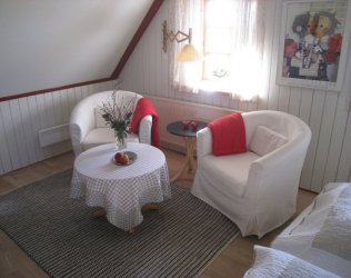 Vi udlejer to dobbeltværelser med fælles bad eller et stort dobbeltværelse med eget bad.